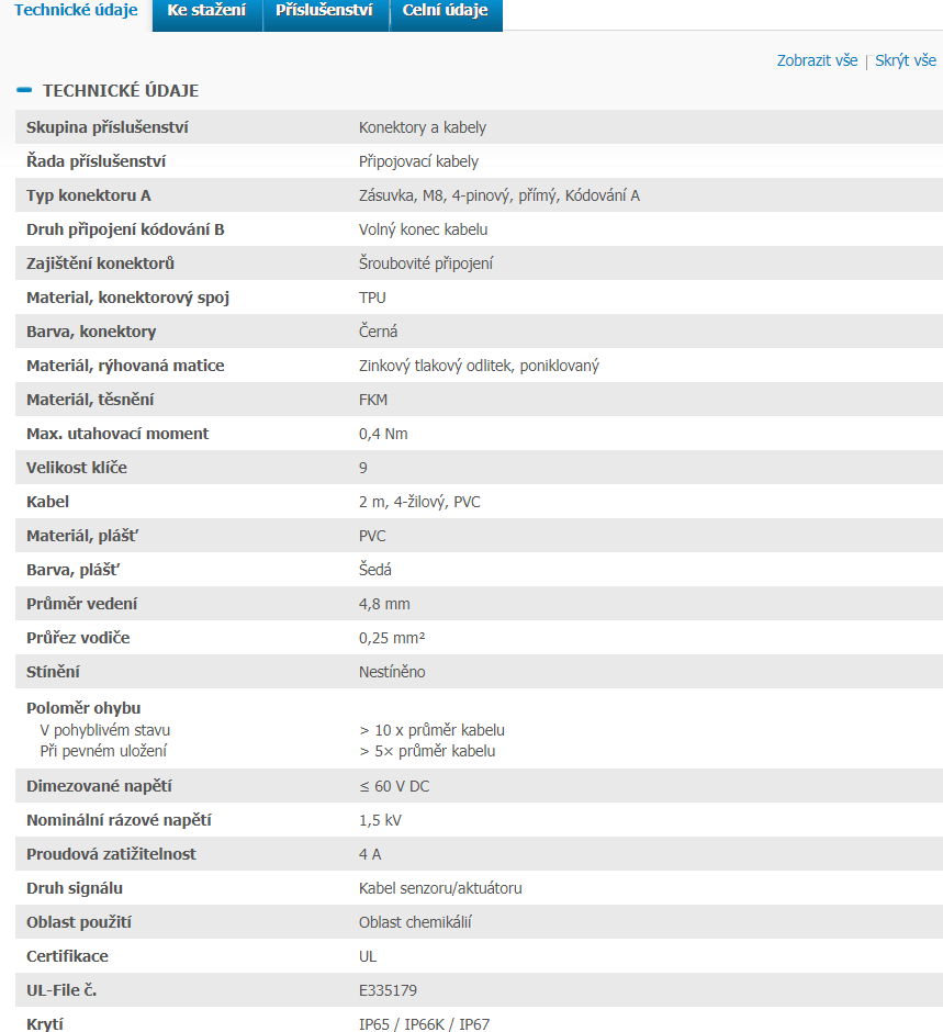 2095888 YF8U14-020VA3XLEAX Kábel s konektorom M8/4pin/2m, priamy