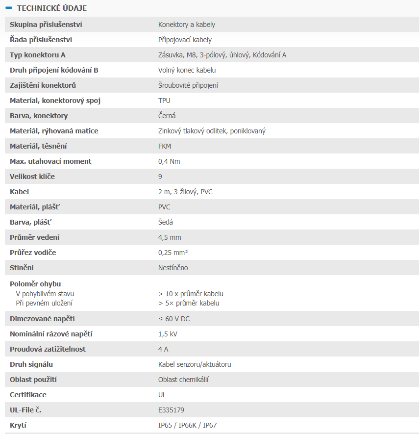 2096165 YG8U13-020VA1XLEAX Kábel s konektorom M8/3pin/2m, uhlový
