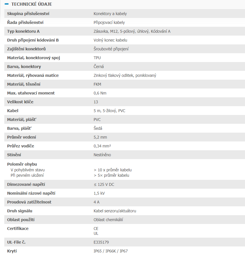 2096216 YG2A15-050VB5XLEAX Kábel s konektorom M12/5pin/5m, uhlový